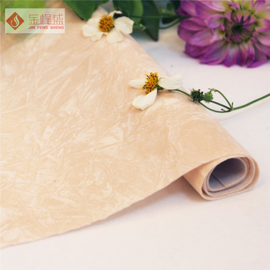F1-L0006-米色水刺底揉紋植絨布,揉紋絨布由不規(guī)則紋路形成不一樣的花紋圖案,清晰明顯,手感柔軟,采用38g水刺布,不掉毛不掉色且環(huán)保。銷售量穩(wěn)定。深圳金峰盛是一家專業(yè)植絨布生產(chǎn)與研發(fā)的植絨布廠家,可以免費提供小樣及按照客戶要求安排打樣。而揉紋植絨的材料絨毛一般均為黏膠毛,而黏膠毛則分兩種:有光黏膠和消光黏膠,兩者的差異是有光黏膠的揉紋揉出來絨面手感柔軟光亮光滑,而消光黏膠是手感柔軟,但絨面就普通,便沒有光亮度。不一樣的絨毛就做出不一樣的產(chǎn)品。