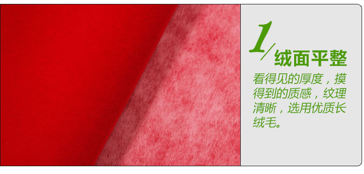 - 產(chǎn)品簡(jiǎn)介:產(chǎn)品名稱:紅色水刺長(zhǎng)毛植絨布(A01.C1.0630) 寬 幅:1.45米 顏 色:紅色 成分及含量:紅色長(zhǎng)尼龍毛+水刺布 紗支:96F 規(guī)格:100碼/卷 用途:適用于家具、首飾禮品盒、五金、空調(diào)配件等。 產(chǎn)品優(yōu)勢(shì):立體感強(qiáng)、顏色鮮艷、手感柔和、豪華高貴、形象逼真、無(wú)毒無(wú)味、保溫防潮、不脫絨、耐摩擦、平整無(wú)隙。